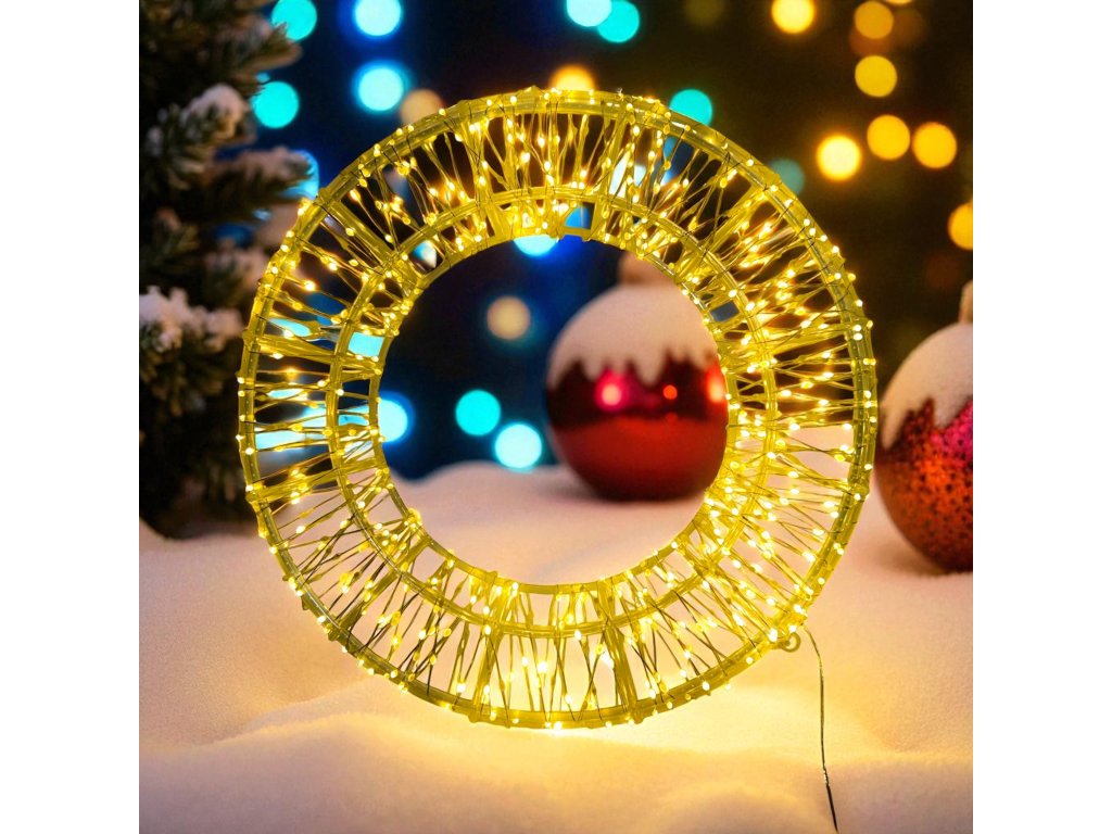 3D vánoční LED světelná dekorace - Věnec 800 LED (45 cm)
