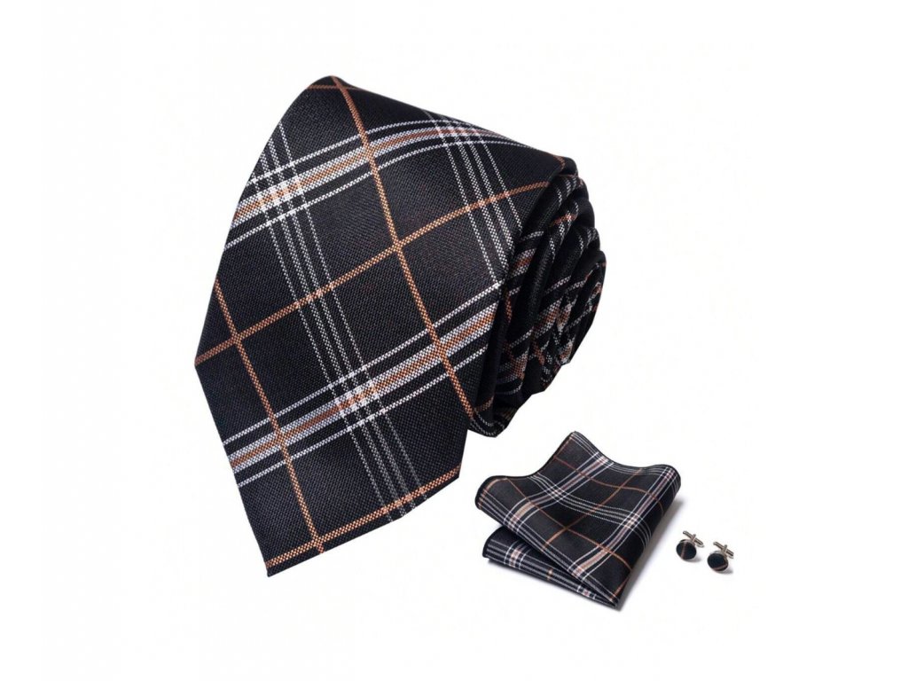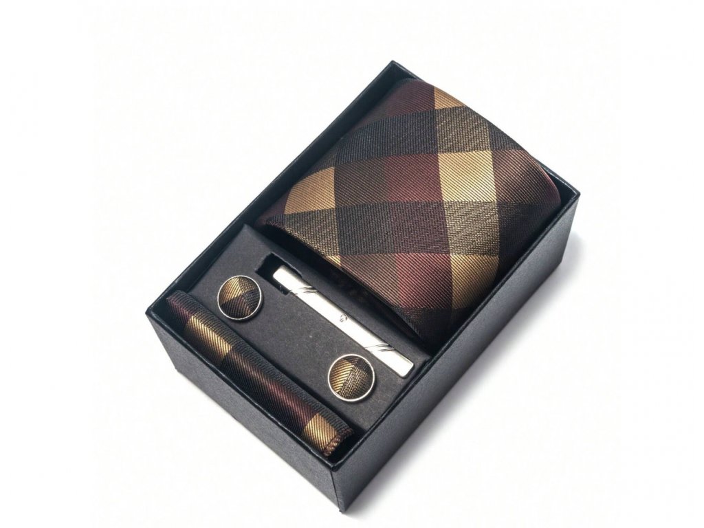 Dárkové balení - kravata, kapesníček a manžetové knoflíčky (kostkovaný vzor)