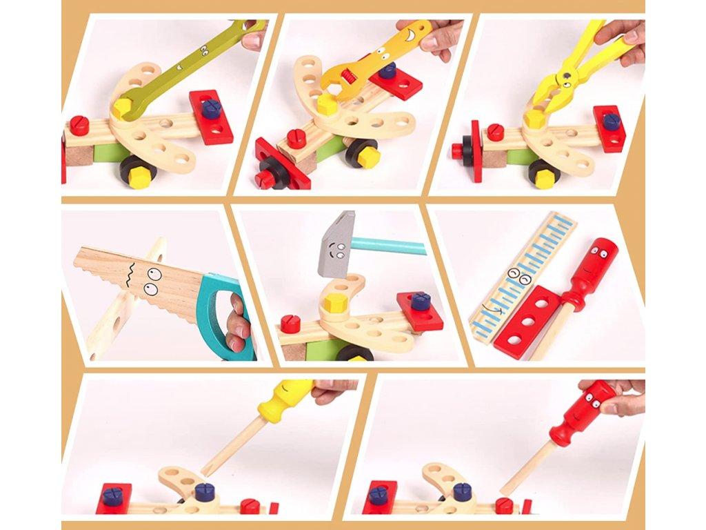 Pro batole je tato sada skvělou příležitostí pro nejefektivnější trénink kognitivních schopností, kreativity, jemné motoriky a koordinace. K tomu je dřevěné dětské nářadí jako stvořené. Nástroje jsou vyrobeny ze dřeva, což je další velká výhoda.