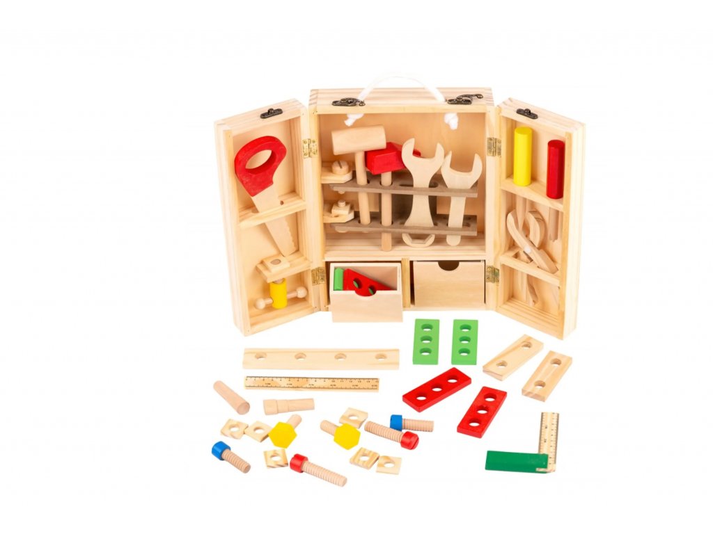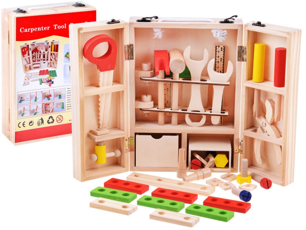 Pro batole je tato sada skvělou příležitostí pro nejefektivnější trénink kognitivních schopností, kreativity, jemné motoriky a koordinace. K tomu je dřevěné dětské nářadí jako stvořené. Nástroje jsou vyrobeny ze dřeva, což je další velká výhoda.