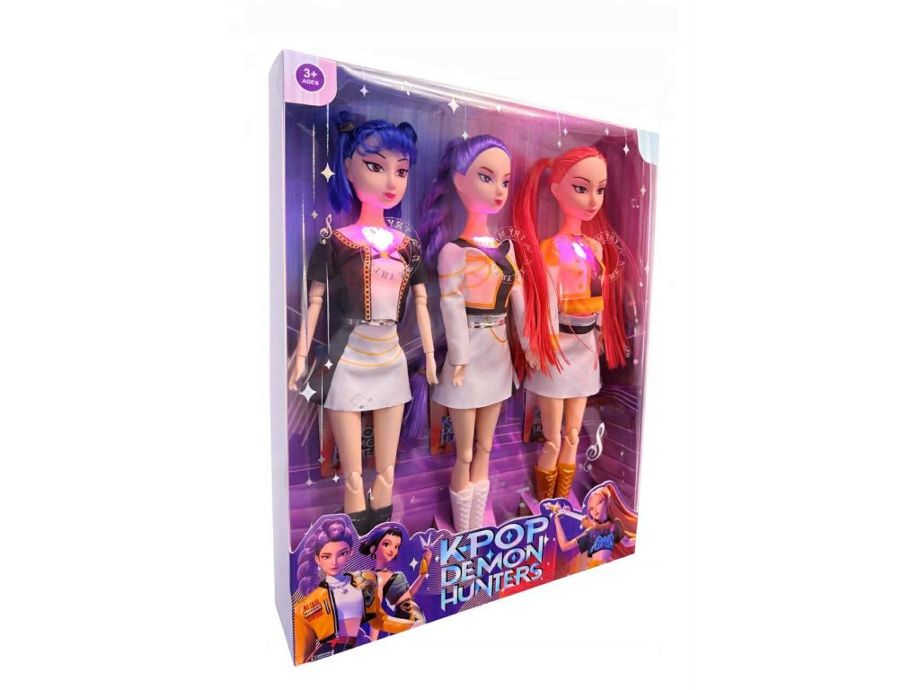 Spojení korejského hudebního stylu s fantastickým světem démonů – unikátní sběratelská sada „K-Pop: Demon Hunter“. Každá panenka má flexibilní spojení, která umožňují nastavení do různých póz – koncertních nebo bojových.