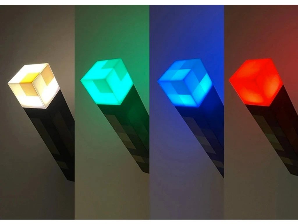 Prosvětli si herní doupě loučí z Minecraftu. Dobíjecí LED lampa v typickém kostkovaném stylu se čtyřmi nastavitelnými barvami (modrá, zelená, žlutá, červená) do game roomu, do dětského pokojíčku, na cosplay, nebo na oslavy.