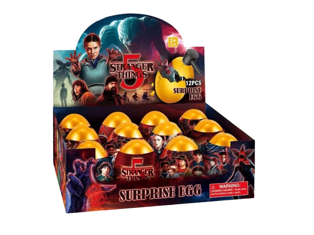 Zábavné překvapení ukryté ve vajíčku! Rozklepni plastové mystery egg kladívkem a objev figurku nebo doplněk ze seriálu STRANGER THINGS. Ideální jako drobný dárek pro děti, na oslavy nebo do sběratelské série.