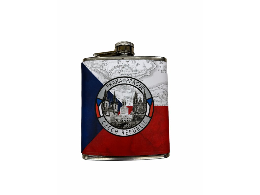 Kvalitní nerezová placatka o objemu 210 ml polepená motivem Prahy - České republiky. Originální dárek pro každého milovníka cestování a dobrých drinků.
