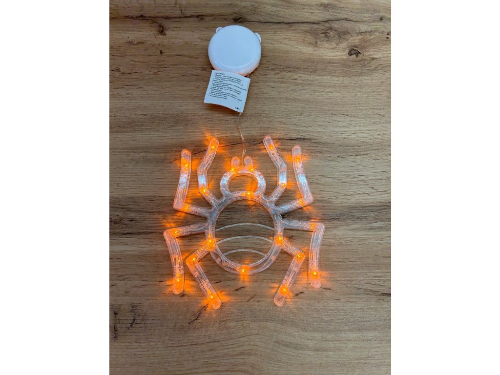 Svítící LED závěsná dekorace do okna - Pavouk (oranžová)