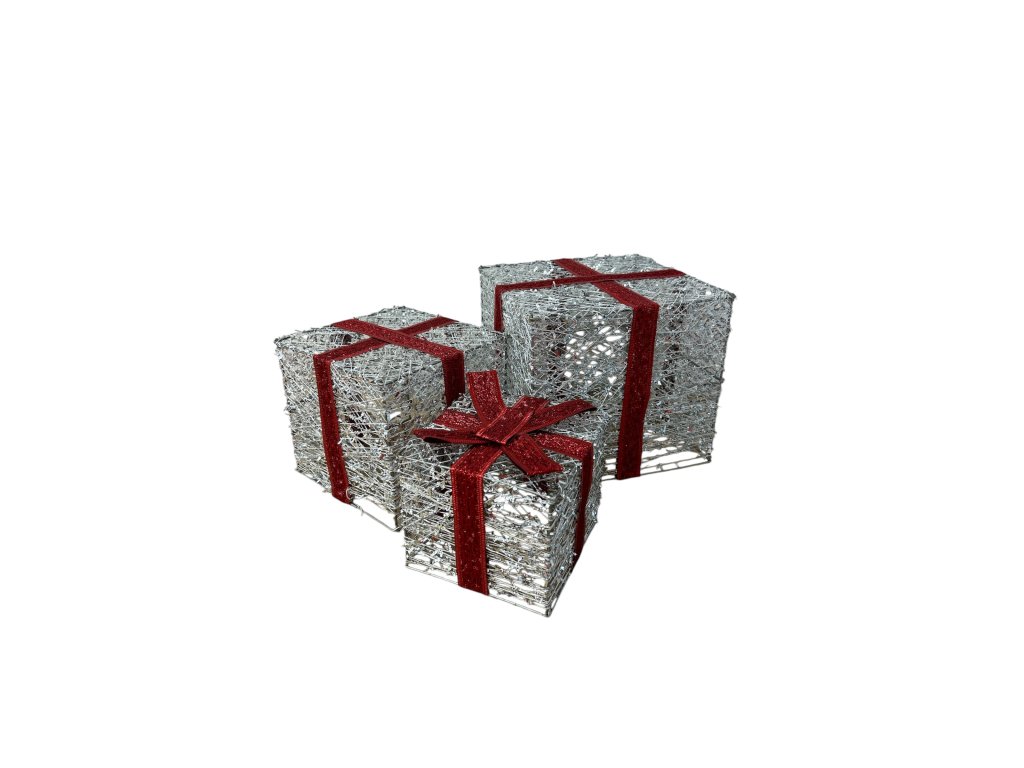Rozsviťte Vánoce s magickými LED dárky s ozdobou v teplém nebo studeném bílém světle. Kouzlo sváteční atmosféry nemusí být omezeno jen na tradiční vánoční výzdobu. Tyto stříbrné dárky s ozdobou přinášejí nádech kouzla do každého interiéru. Nechte je zazářit vedle stromečku, na komodě, nebo dokonce na TV stolku.