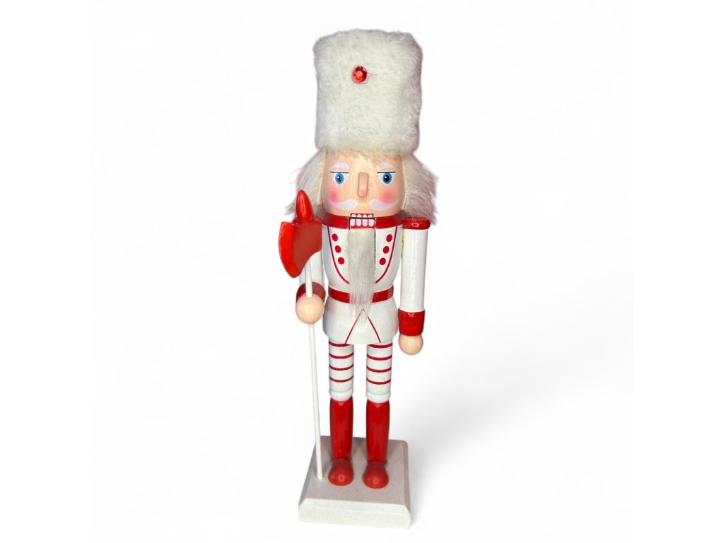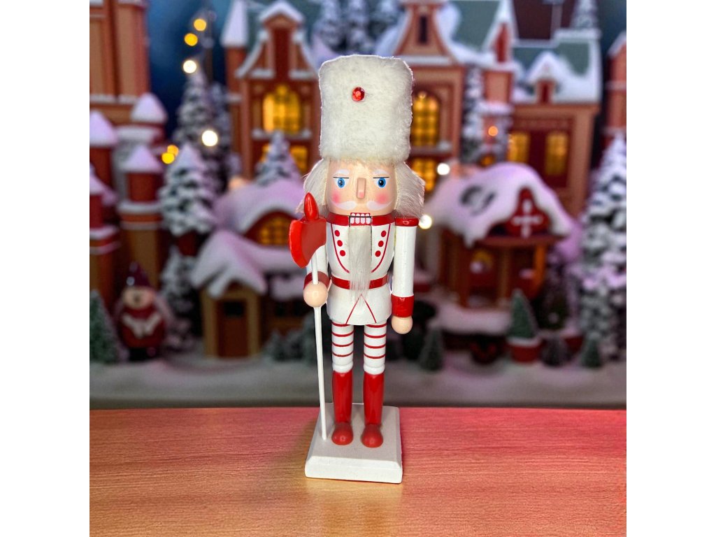 Vánoční dekorace louskáček - Bílo-červený s holí (30 cm)