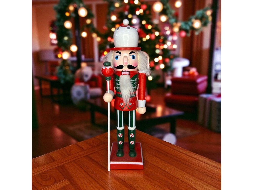 Vánoční dekorace louskáček - Červeno-zelený s holí (30 cm)