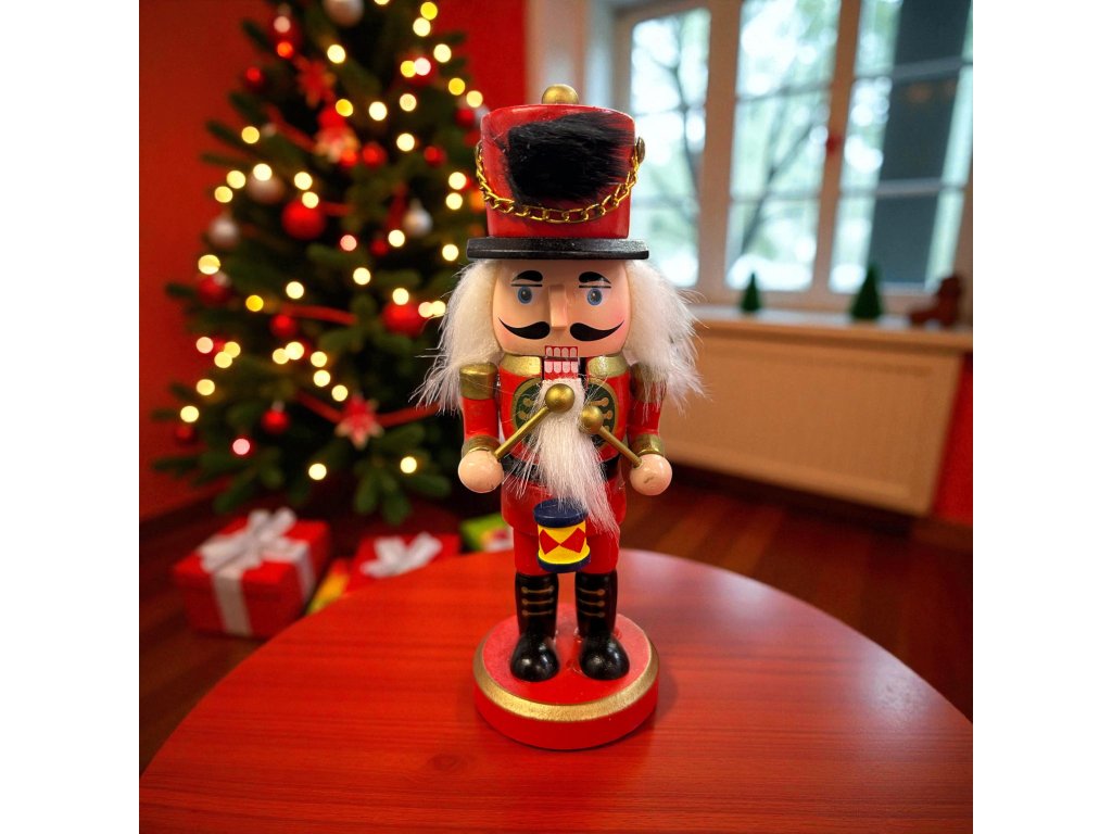 Vánoční dekorace louskáček - Červený s bubínkem (17 cm)