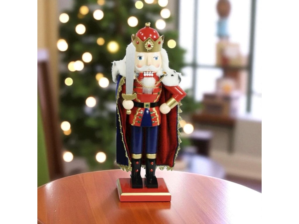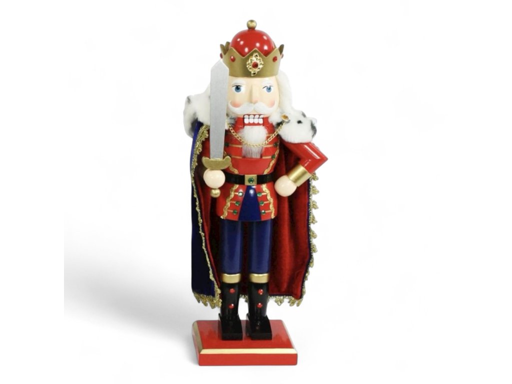 Vánoční dekorace louskáček - Král s pláštěm a mečem (40 cm)