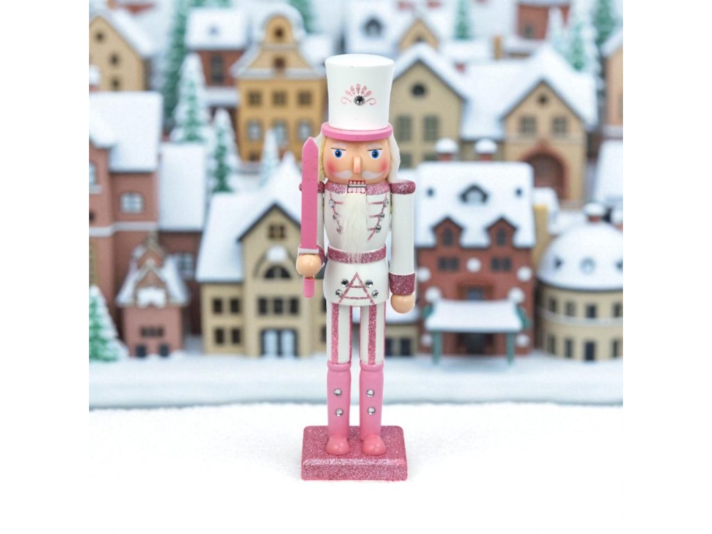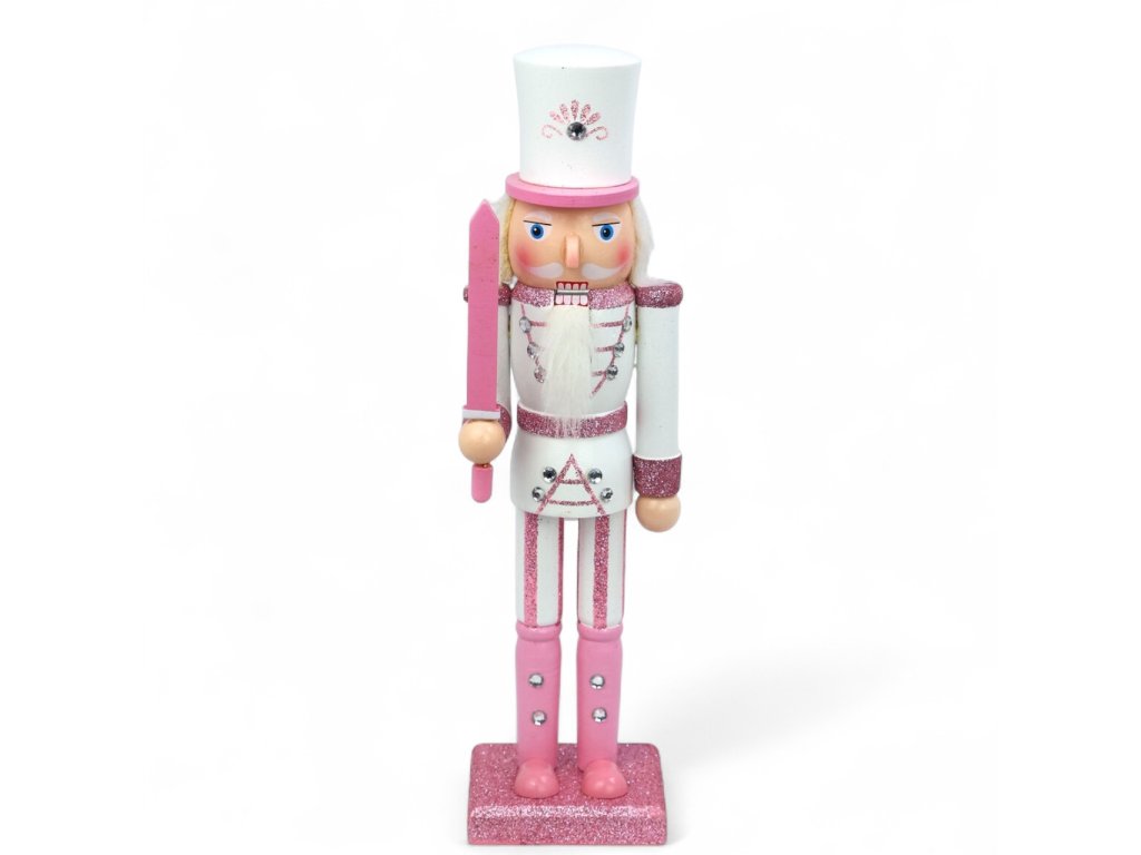 Vánoční dekorace louskáček - Růžový s mečem (30 cm)