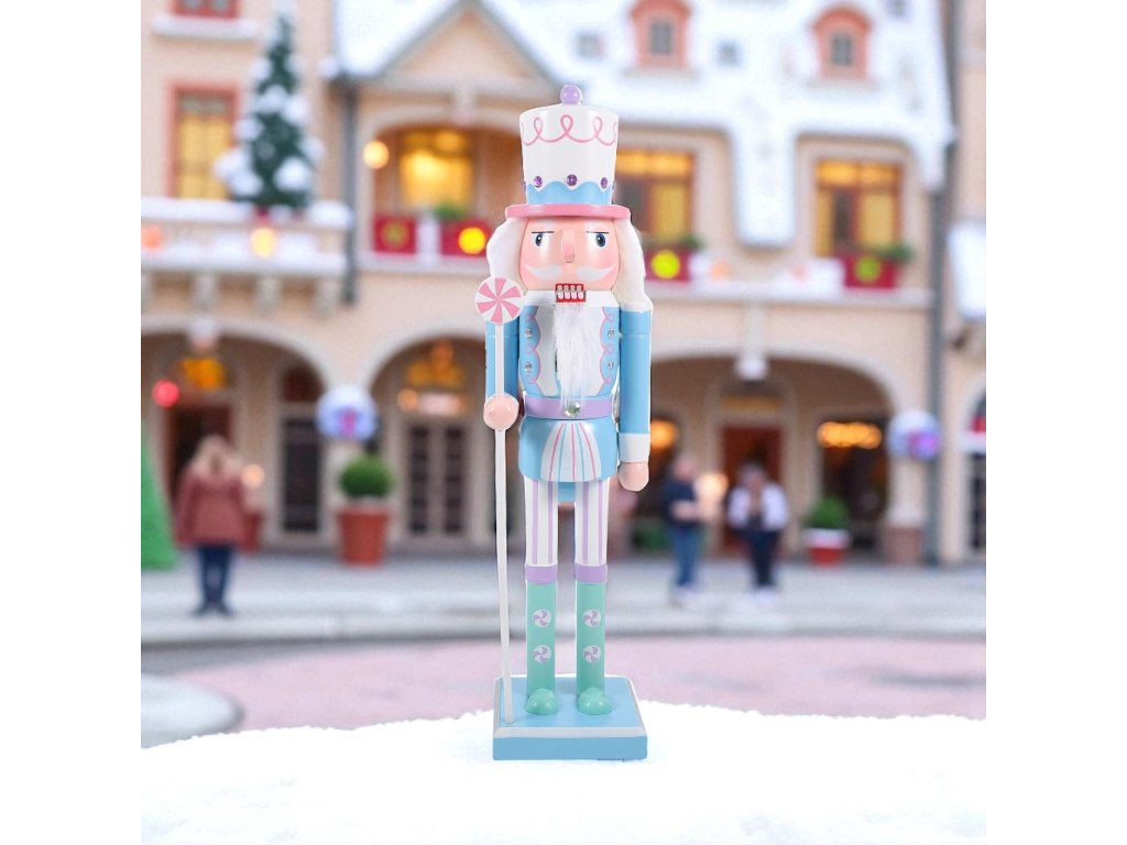 Vánoční dekorace louskáček - Světle modrý s holí (40 cm)