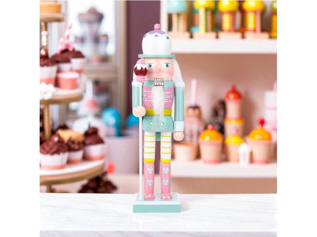 Vánoční dekorace louskáček - Tyrkysovo-růžový s holí (40 cm)