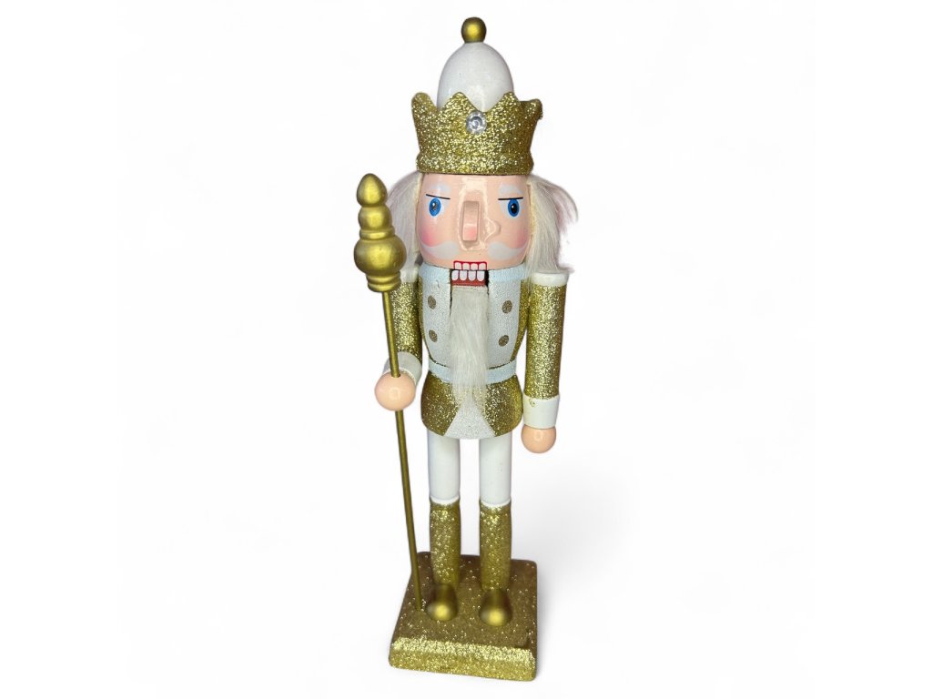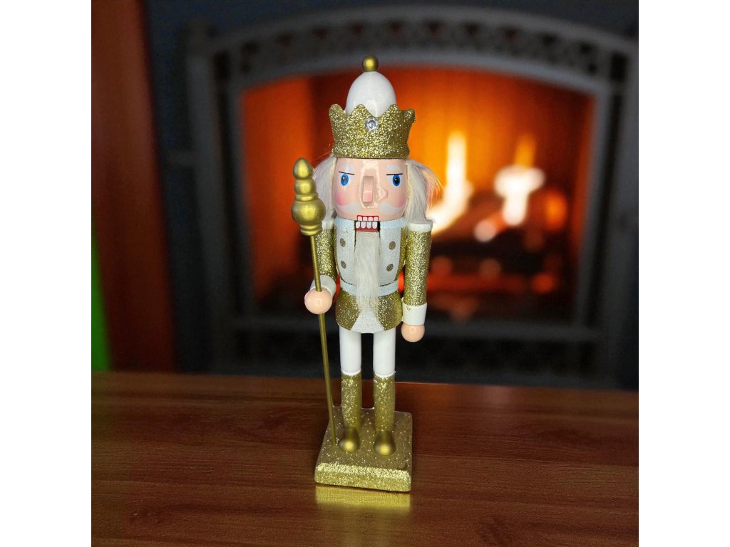 Vánoční dekorace louskáček - Zlatý třpytivý s holí (30 cm)