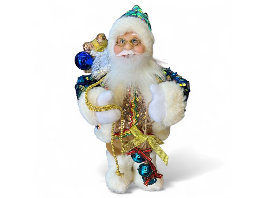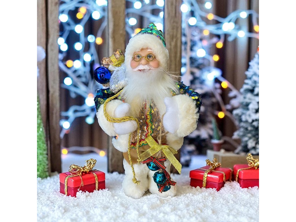 Tento štědrý dědeček je oděn do teplého zimního oblečení a vypadá, že je perfektně připravený na rozvoz dárků. Jeho milý úsměv vám navodí pozitivní náladu a zpříjemní přežití vánočních svátků.