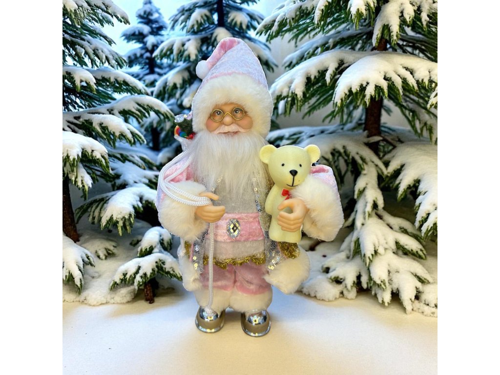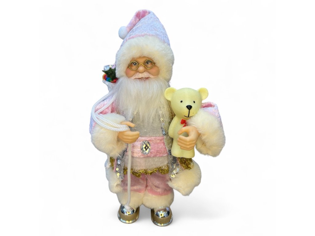 Vánoční dekorace Santa Claus - Růžový s medvídkem (30 cm)
