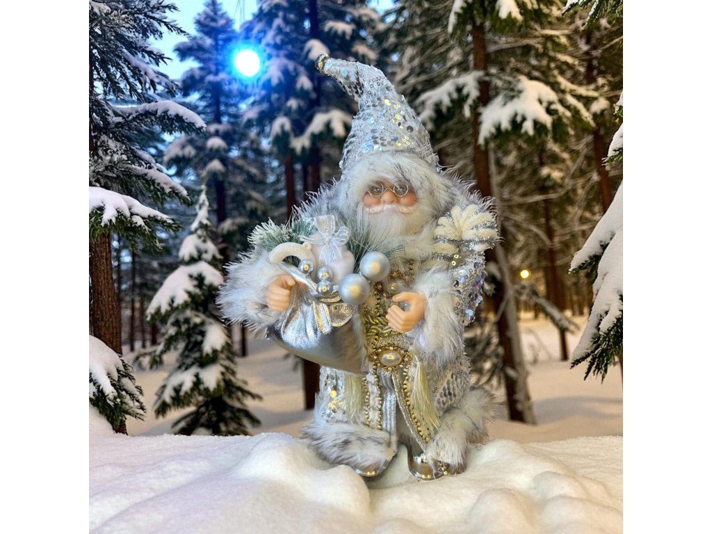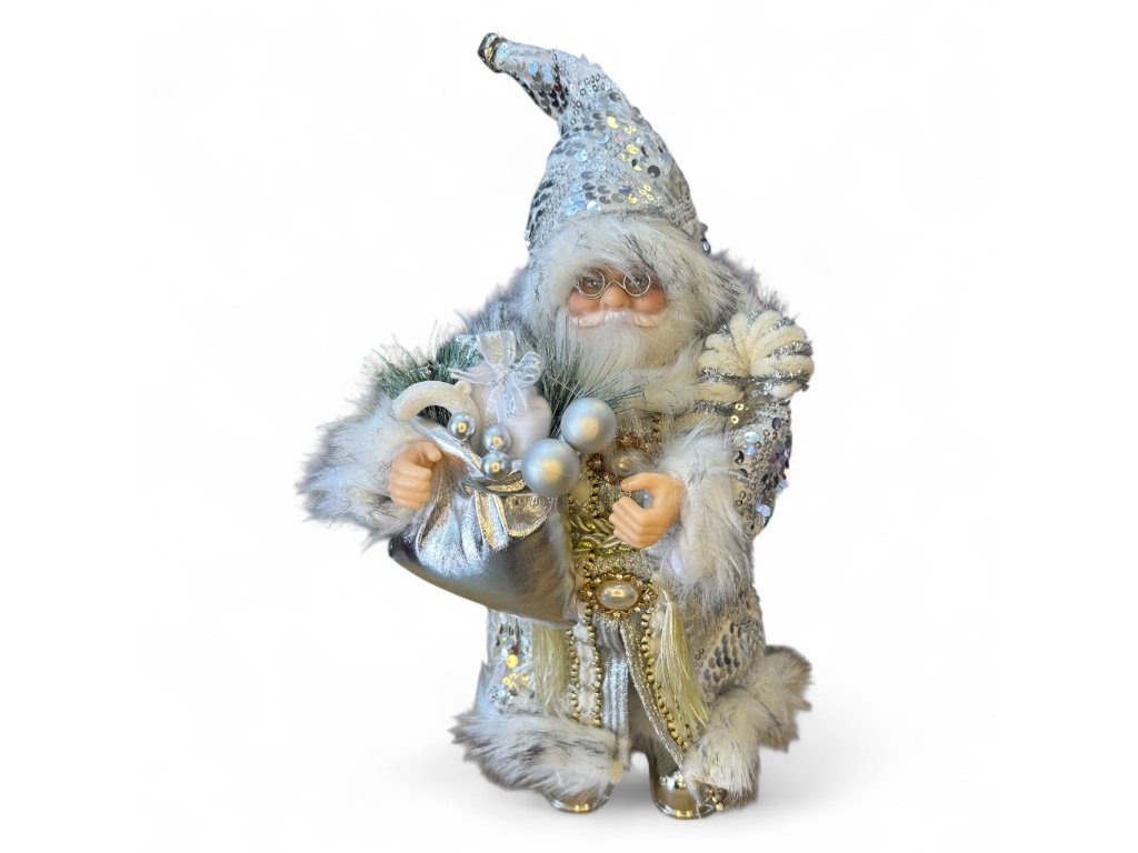 Vánoční dekorace Santa Claus - Stříbrný v kabátu (30 cm)