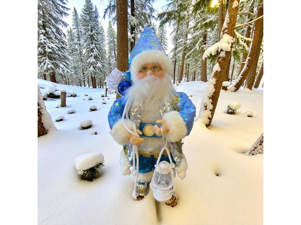 Vánoční dekorace Santa Claus - Světle modrý s lucernou (30 cm)