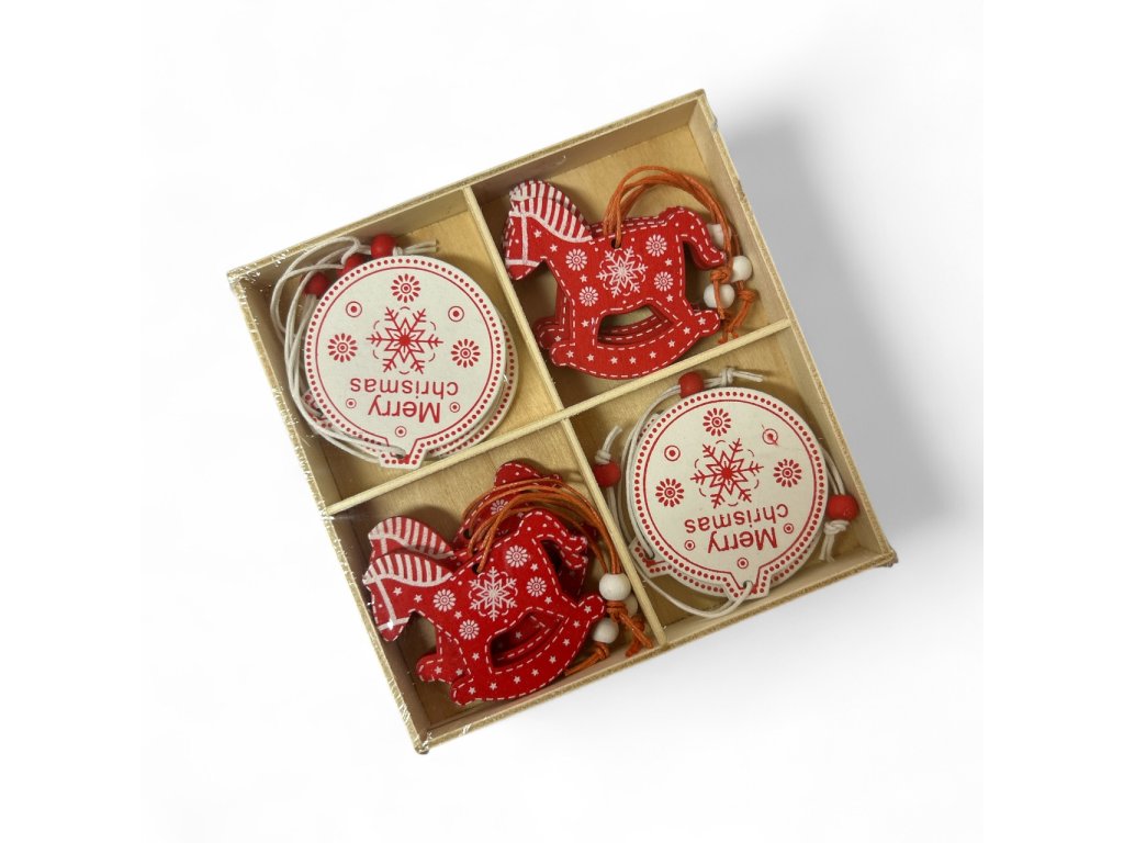Vánoční dřevěné ozdoby - Červeno-bílé (12 ks)