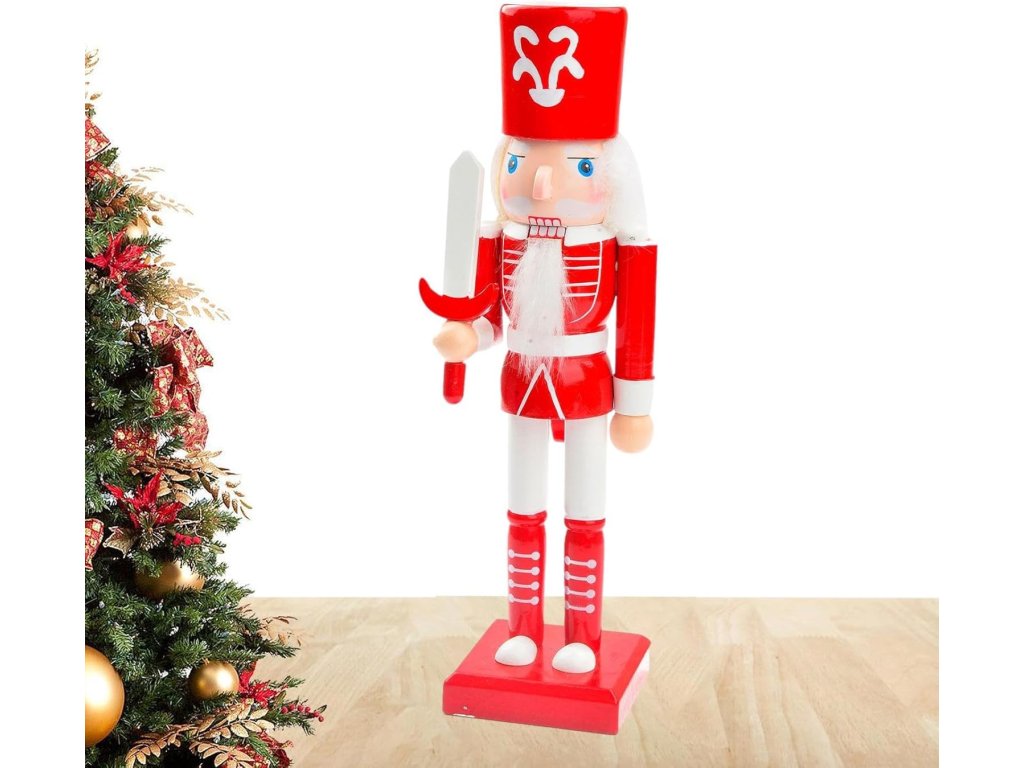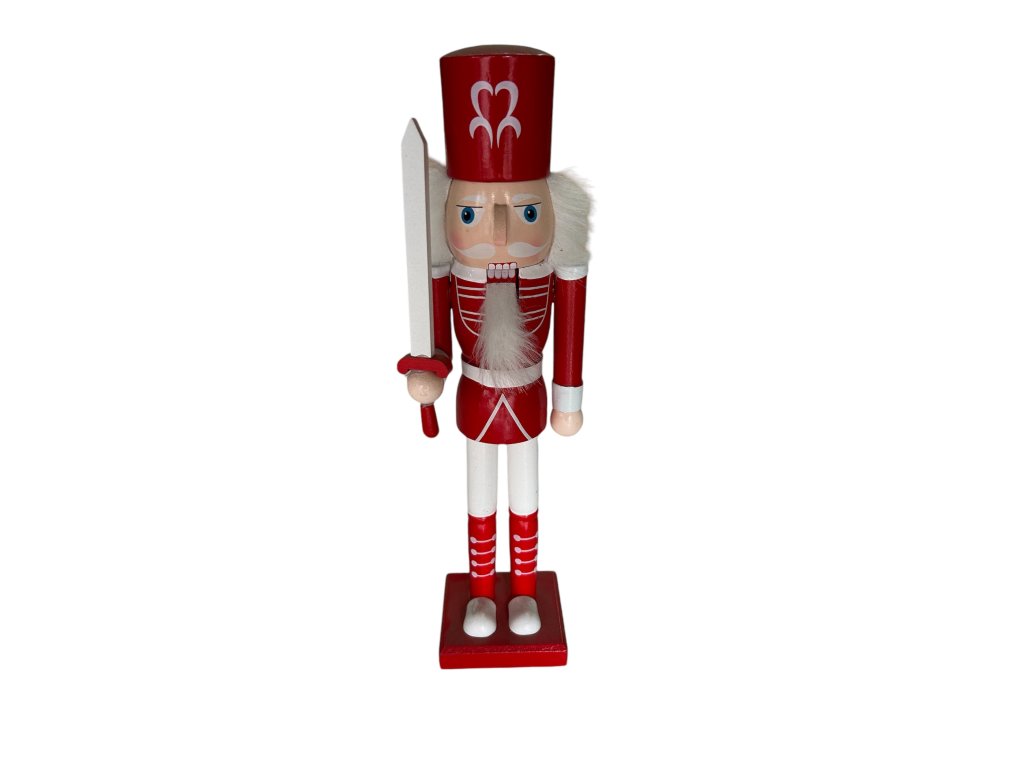 Vánoční figurka louskáček - Červeno-bílý s mečem (40 cm)