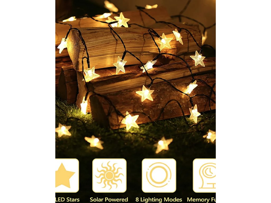 Venkovní vánoční solární led osvětlení - Hvězdy 30 LED (5m)
