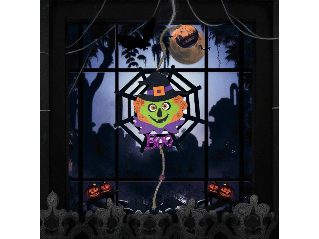 Tato unikátní závěsná dekorace v podobě pavučiny je vyřezaná z masivního dřeva a pečlivě vyrobená s různými halloweenskými motivy. Její kompaktní velikost a klasický vzhled dodávají nádech rustikální elegance a zároveň zachovávají strašidelnou atmosféru svátků.